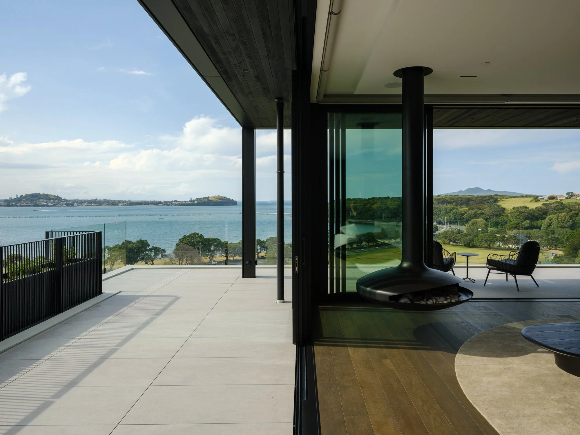Apartment 101 sits elevated above the ground-level residences, offering unobstructed panoramic views across the Waitematā Harbour. From sunrise to sunset, the home benefits from all-day sun, especially in the afternoon and evening. A large, north-facing terrace features infrared heating and flows directly from the living area, designed to complement the expansive outlook.